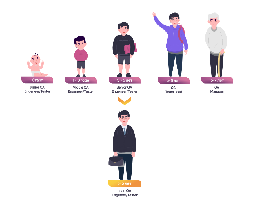 Карьерный путь QA начинается не без должного образования. Часто эта профессия становится первой записью в трудовой книжке у выпускников технических вузов. А дальше, они набираются опыта и уходят в разработку. По крайней мере, некоторые планируют так делать. Однако, тестирование — работа для погруженных. В профессии остаются лишь те, кто готов инвестировать время и усилия.