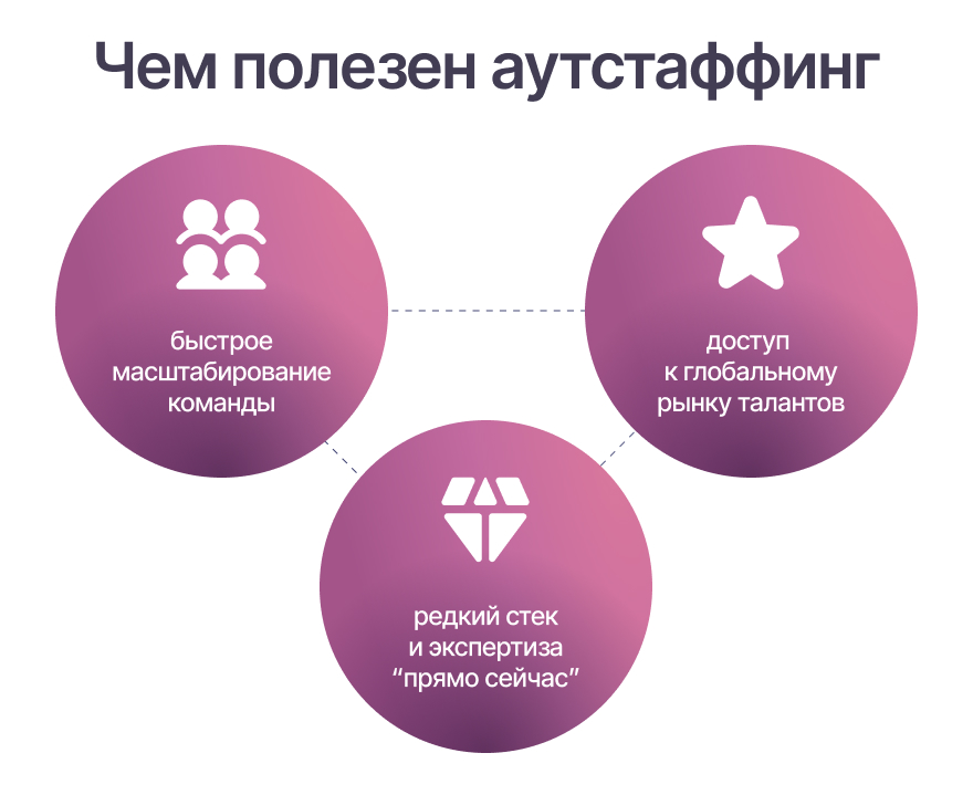 Если нужен редкий стек или экспертиза «здесь и сейчас», то аутстаффинг — идеальное решение. Обычно в таких случаях идут искать кого-то на фрилансе, но это несет за собой соответствующие риски. За специалистом на аутстаффе целая ИТ-компания, которая несет ответственность и обязательства. Она также может гарантировать вам предоставления другого специалиста, если сотрудника на аутстаффе по каким-то причинам надо подменить.